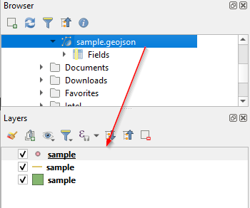 When you need to import a GeoJSON file into your QGIS project, you just need to drag & drop the GeoJSON file from File Browser.
